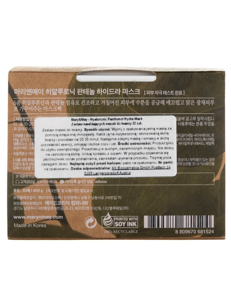 Zloženie: Doctor's Best6 Hyaluronic Panthenol Hydra Mask hydratačné masky - 30 kusov