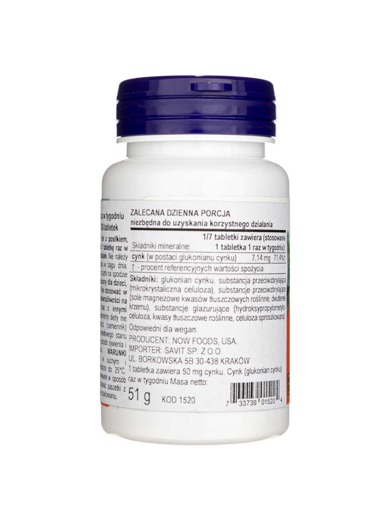 Zloženie produktu: Glukonát zinočnatý, protihrudkujúca látka (mikrokryštalická celulóza), protihrudkujúca látka (horečnaté soli rastlinných mastných kyselín, oxid kremičitý), leštiace látky (hydroxypropylmetylcelulóza, rastlinné mastné kyseliny, prášková celulóza).