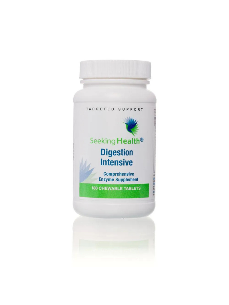 Sacharidy, cukrový alkohol (xylitol, manitol), komplexná zmes enzýmov: (mikrobiologického pôvodu), amyláza, alfa-amyláza, glukoamyláza (s aktivitou bočného reťazca izomaltázy), enzýmy špecifické pre cukor: laktáza, sacharóza (invertáza), maltáza, pululanáza (degradujúci enzým s aktivitou bočného reťazca izomaltázy); enzýmy špecifické pre rastlinné/rastlinné vlákna: celuláza, komplex hemiceluláza/pektináza/fytáza, fytáza, beta-glukanáza, alfa-galaktozidáza, galaktomanáza; enzýmy špecifické pre proteíny a peptidy: kyslá proteáza, alkalická proteáza, komplex proteáza/peptidáza s endopeptidázou, Serratia peptidáza (entericky potiahnutá); Enzým, ktorý pomáha pri trávení tuku, Lipáza; kyselina stearová, oxid kremičitý, prírodná čerešňová aróma a extrakt zo sladkého drievka. Vhodné pre vegánov a vegetariánov. Neobsahuje: mlieko, vajcia, ryby, mäkkýše, stromové orechy, arašidy, pšenicu, sóju, lepok, umelé farbivá, umelé arómy, umelé konzervačné látky.