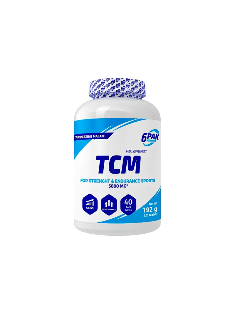 Trikreatín malát (62,5%), plnivá (mikrokryštalická celulóza, škrob), protihrudkujúce látky (uhličitan vápenatý, horečnaté soli mastných kyselín, oxid kremičitý). Môže obsahovať neúmyselnú prítomnosť mliečnych derivátov, sóje, obilnín obsahujúcich lepok (pšenica), vajec, zeleru a horčice.