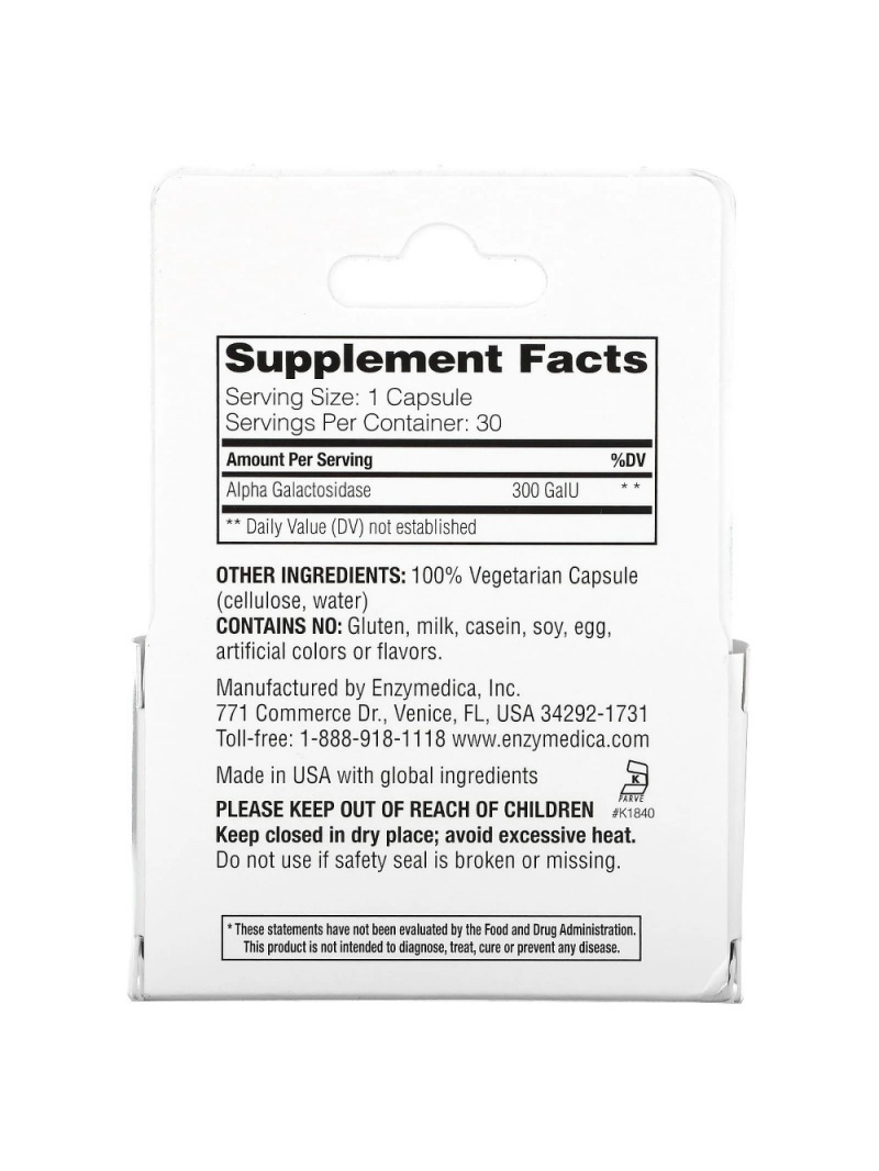 Zloženie: Enzymedica BeanAssist (alfa galaktozidáza) - 30 kapsúl
